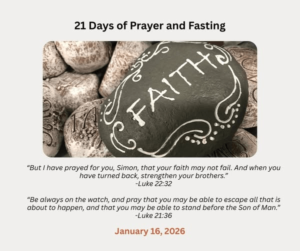 1. Lord, we are so excited for all you are calling LCC to in 2026. May we not lose sight of the true mission of our work, to love you, worship you, and make disciples of all nations. Please help us to reach those in our community who do not know you and feel unseen by all. May our faith grow stronger every day. Amen!
